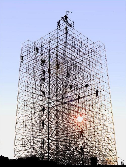 Scaffolding today is mainly made of metal pipes. But in some parts of Asia, scaffolding is made of bamboo and is even used when building very tall skyscrapers.